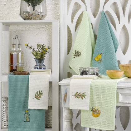 Originalna cena je bila: 1.600 рсд.1.400 рсдTrenutna cena je: 1.400 рсд.Set kuhinjskih krpa izrađene od 100% pamuka. Mekane, upijajuće i dugotrajne, savršen su dodatak svakodnevnim kuhinjskim poslovima. Idealne za čišćenje, brisanje ruku i posuđa, pružaju visoki nivo udobnosti i funkcionalnosti.