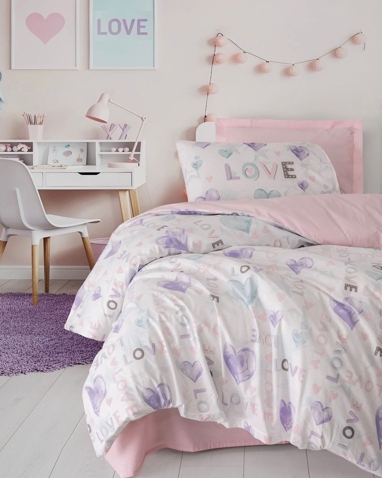 100 % Pamuk Singl Posteljina- Lovella Roze